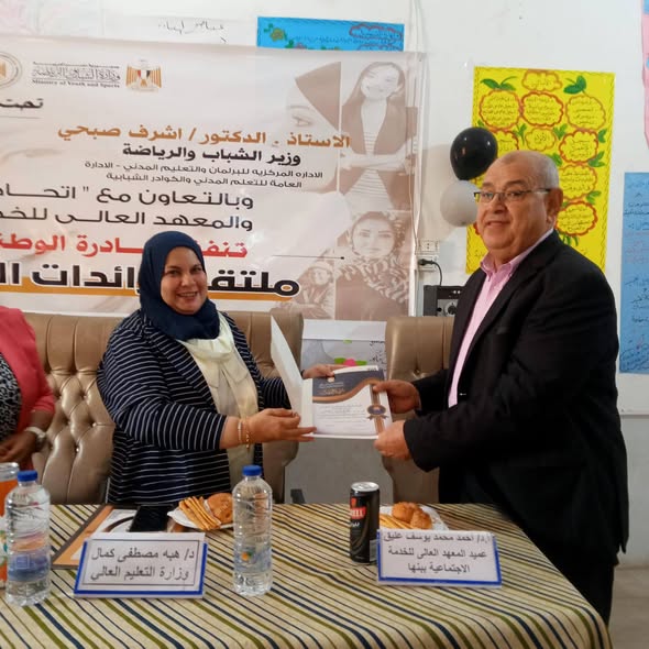 أقيمت في المعهد العالي للخدمه الاجتماعيه بنها تنفيذ المبادرة الوطنية ( رائدات مصر) ملتقى العمل المجتمعي لتنمية الوعي بأهمية دور المرأة في خدمة المجتمع .