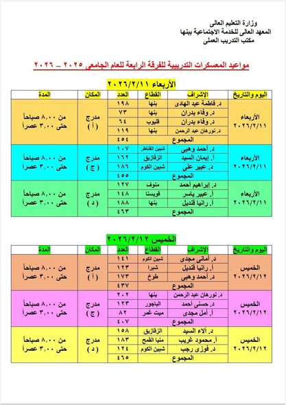 اعلان هام لطلبة الفرقة الرابعة
